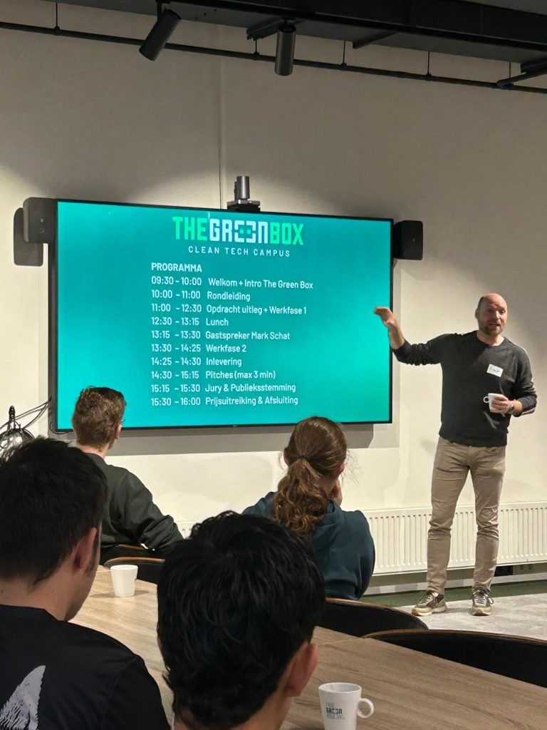 Tijdens het bezoek gaf Ynte de Vries een algemeen inzicht over The Green Box en zijn visie op de energietransitie, met als highlight de fantastische kansen voor verduurzaming van vastgoed: