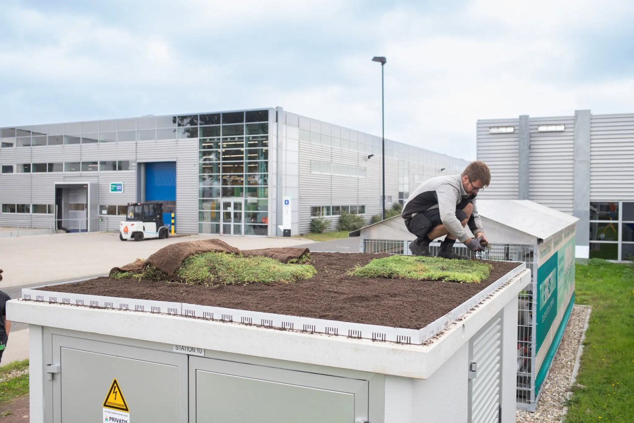 Het trafohuisje-sedumdak werd geboren en de primeur kan men aanschouwen op onze cleantech campus.